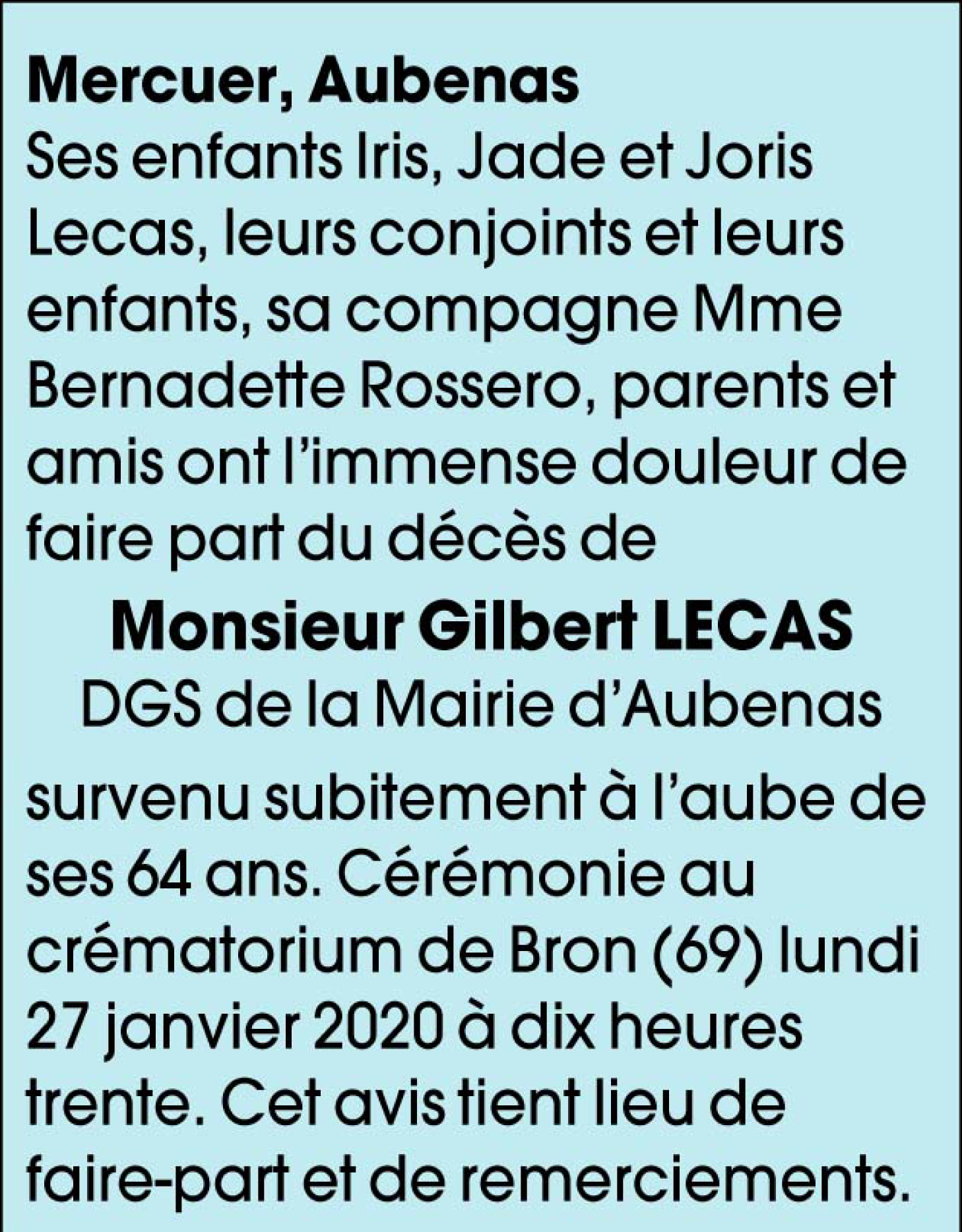 Décédé à Lyon (69007, France) le mardi 21 janvier 2020 à l'âge de 63 ans