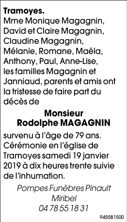 Décédé à Albigny-sur-Saône (69250, France) le mardi 15 janvier 2019 à l'âge de 79 ans