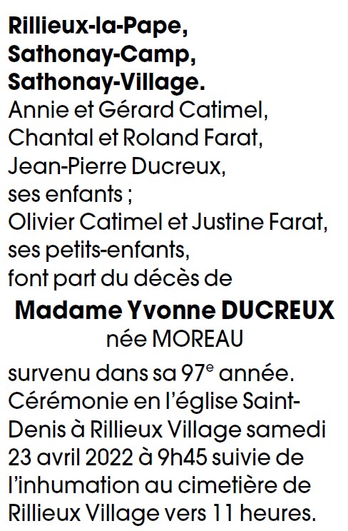 Décédée à Rillieux-la-Pape (69140, France) le lundi 18 avril 2022 à l'âge de 96 ans