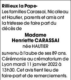 Décédée à Limonest (69760, France) le dimanche 2 janvier 2022 à l'âge de 88 ans