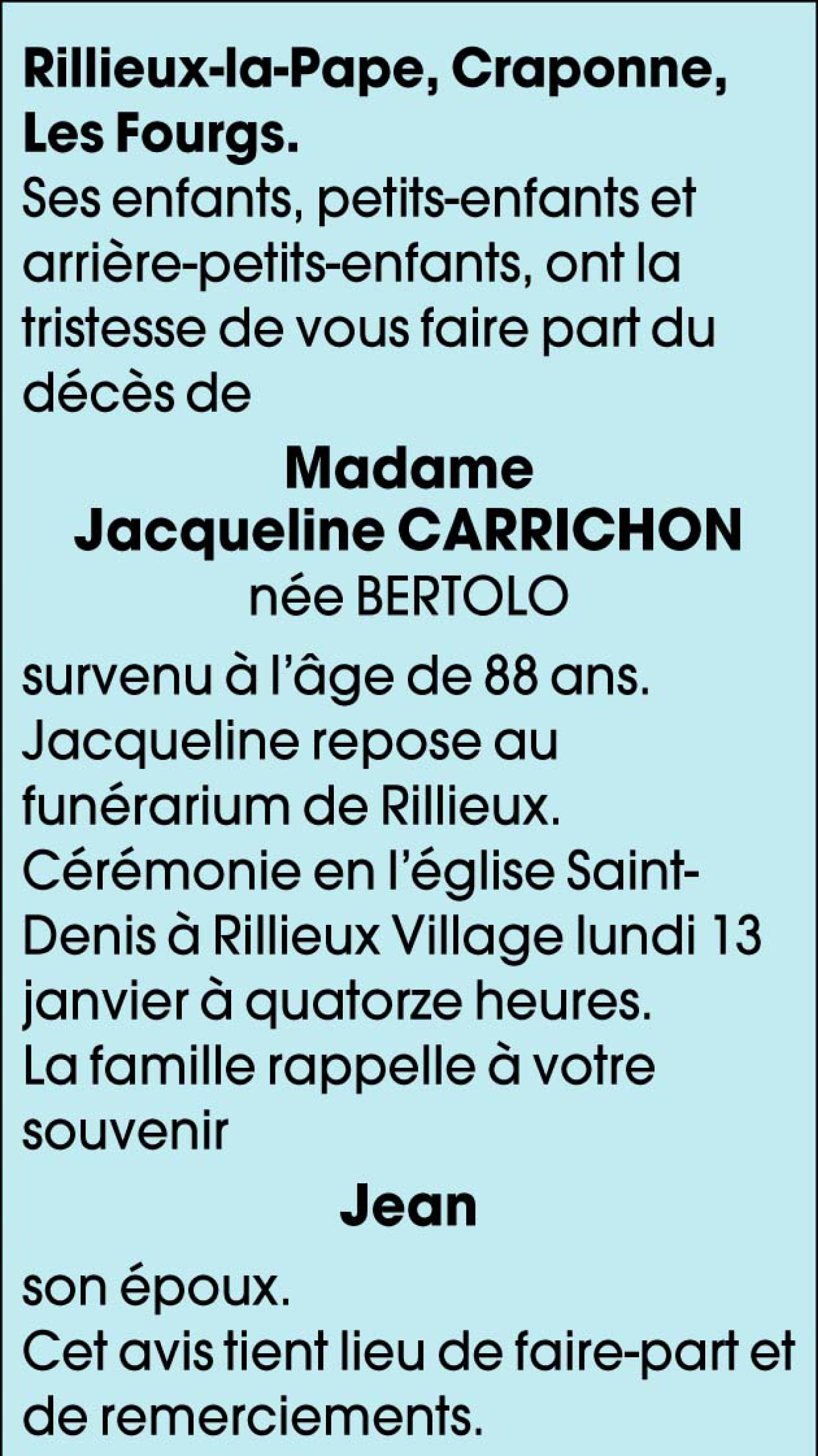 Décédée à Caluire-et-Cuire (69300, France) le jeudi 9 janvier 2020 à l'âge de 88 ans
