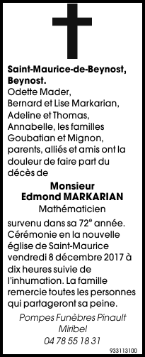 Décédé à Mollon (01800, France) le dimanche 3 décembre 2017 à l'âge de 71 ans