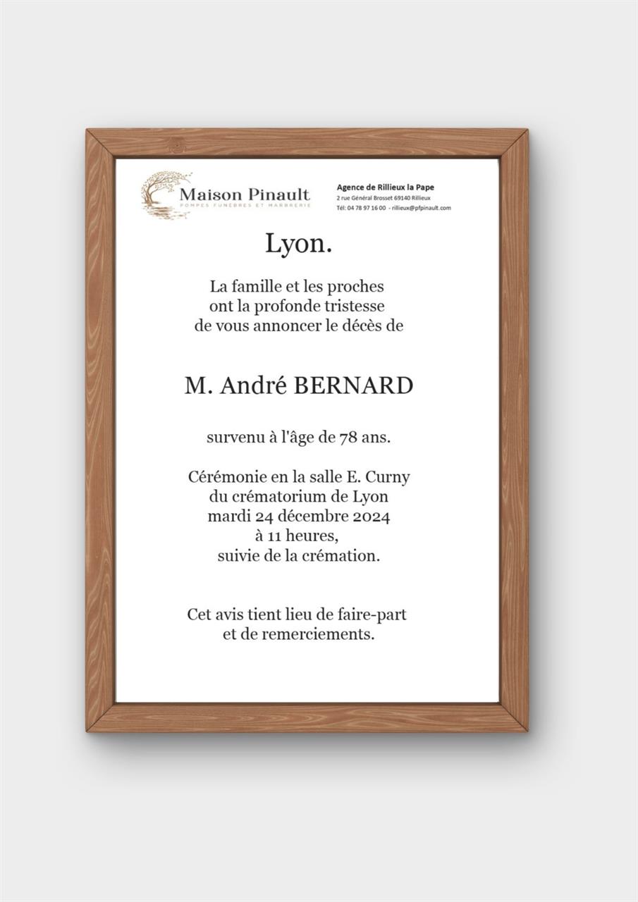 Décédé à Lyon (69005, France) le vendredi 13 décembre 2024 à l'âge de 78 ans