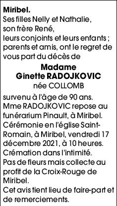 Madame Ginette RADOJKOVIC née COLLOMB
