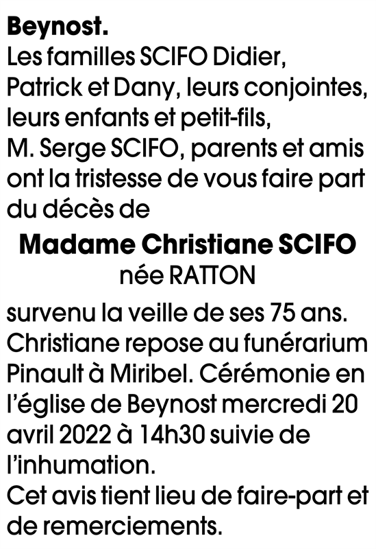 Décédée à Bron (69500, France) le samedi 16 avril 2022 à l'âge de 74 ans