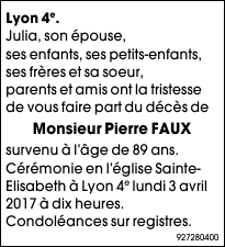 Décédé à Villeurbanne (69100, France) le mercredi 29 mars 2017 à l'âge de 89 ans