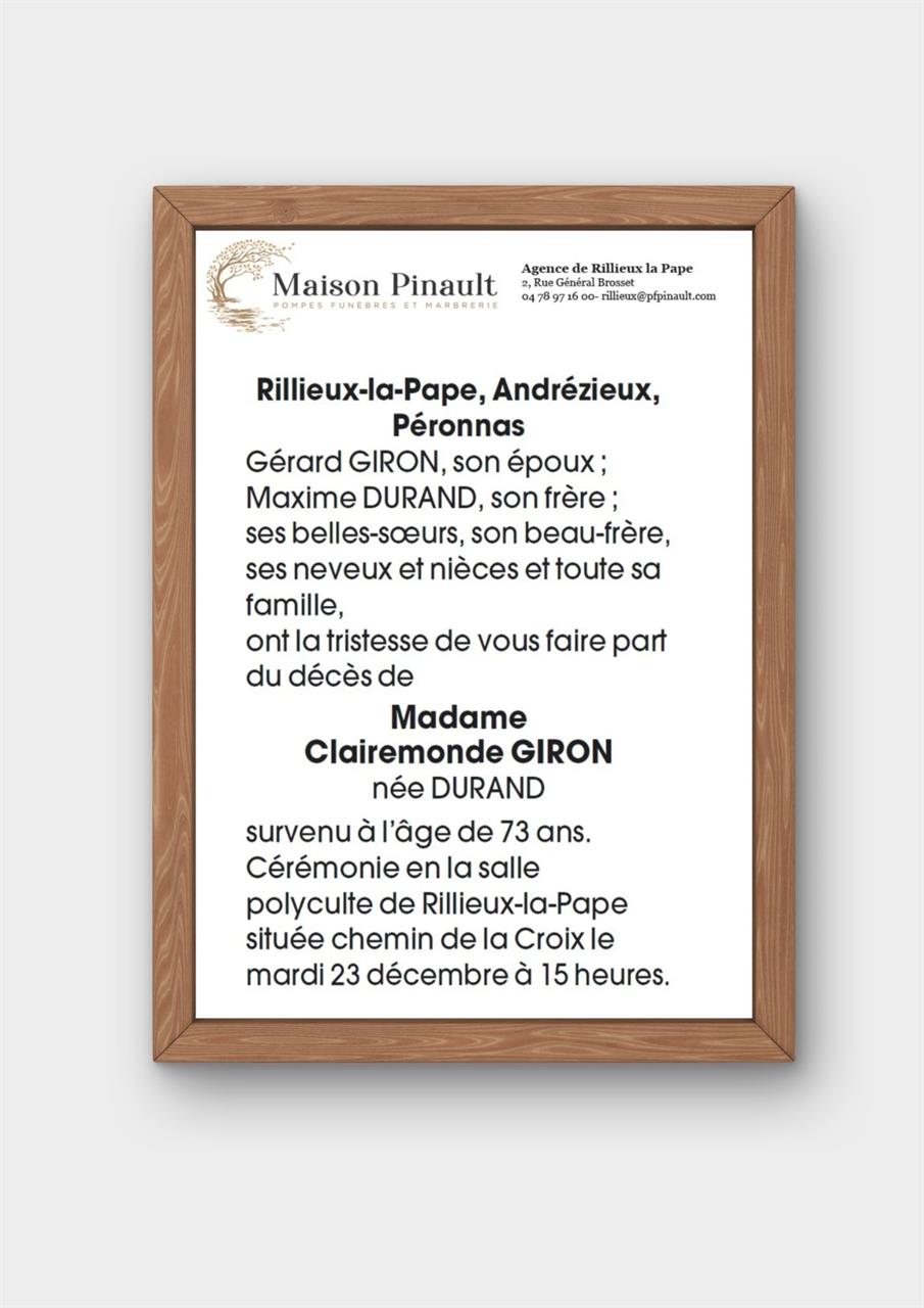 Décédée à Rillieux-la-Pape (69140, France) le jeudi 18 décembre 2025 à l'âge de 73 ans